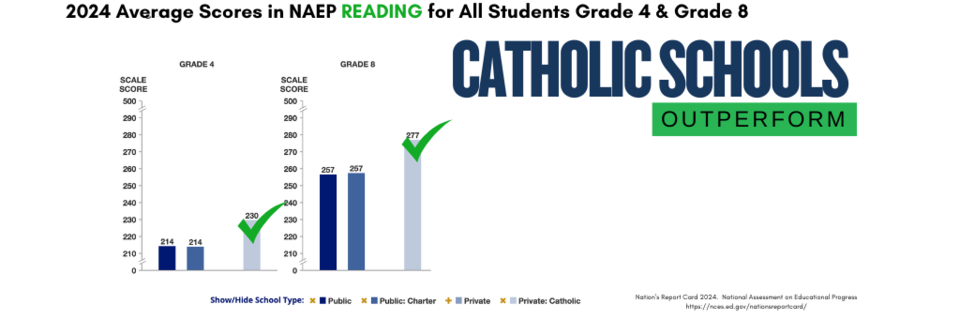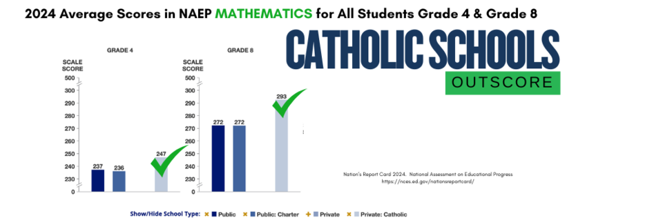 With an impressive lead, Catholic Schools across the country continue to outscore and outperform public and charter schools in Mathematics and Reading as noted by recent NAEP scores.